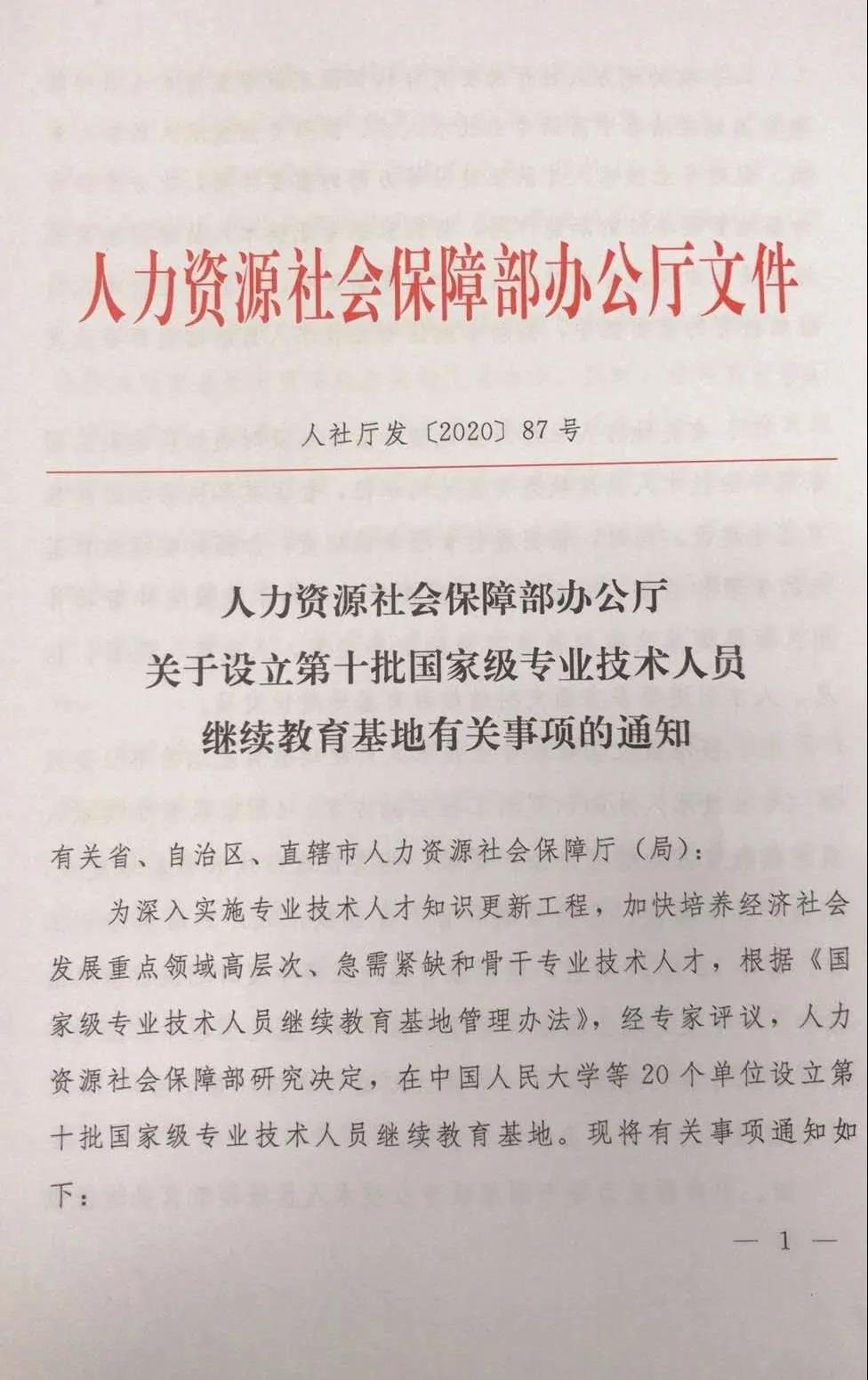 近日,国家人力资源和社会保障部发布《关于设立第十批国家级专业技术人员继续教育基地有关事项的通知》,beat365中文官方网站获批第十批国家级专业技术人员继续教育基地(全国共20个)。