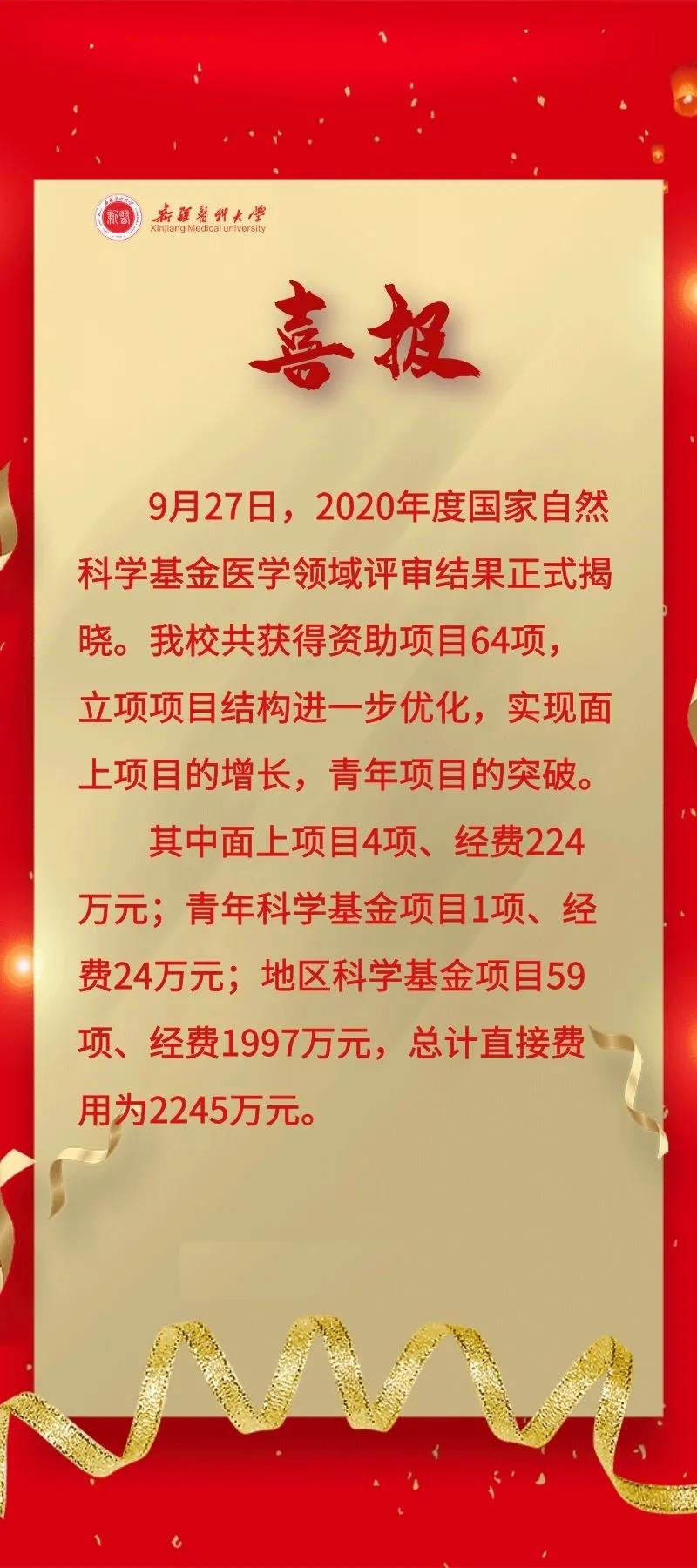 beat365中文官方网站和各个附属医院在基金申报过程中,加强创新引领和学科交叉,整合二级学院与附属医院的优势资源,强强联合,组建研究团队,扩大基金申报的学科覆盖面。2020年学校在国家自然科学基金各学部均有项目斩获,其中生命科学部4项(经费182万元)、管理科学部3项(经费85万元)、信息科学部1项(经费35万元)和医学科学部55项(经费1909万元)。