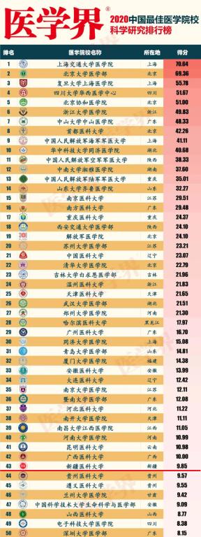 近日,《2020中国最佳医学院校"科研100强"》榜单公布,beat365中文官方网站在榜单中位居第43位。