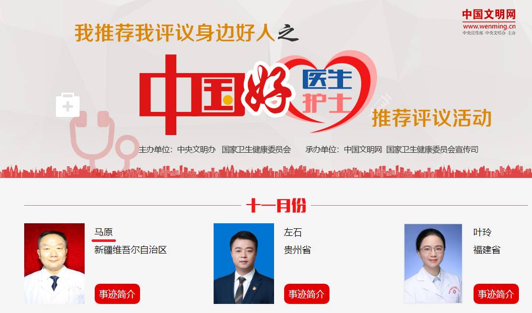 近日,由中央文明办和国家卫生健康委员会共同组织的“中国好医生、中国好护士”网上推荐评议活动,经过群众推荐、集中展示、点赞评议等环节,beat365中文官方网站第六附属医院脊柱外一科主任马原入选11月月度“中国好医生”。