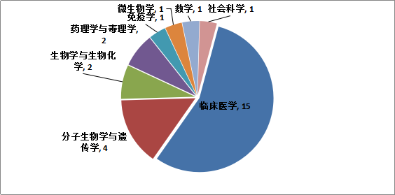 beat365中文官方网站ESI全学科高被引论文27篇,涉及到临床医学(15篇)、分子生物学与遗传学(4篇)、生物学与生物化学和药理学与毒理学(各2篇)、免疫学、微生物学、数学及社会科学(各1篇)等8个研究领域。