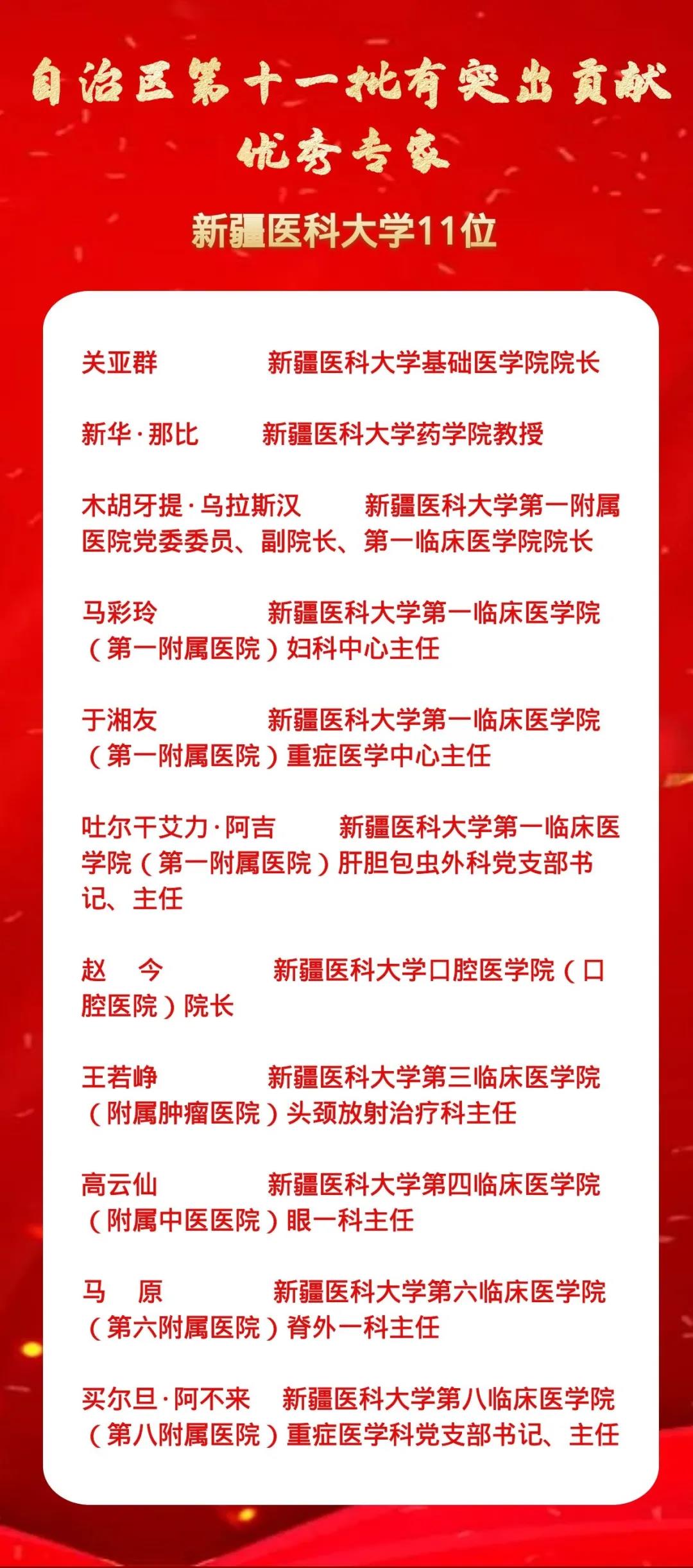 来看看获得自治区第十一批有突出贡献优秀专家的这11位新医人……