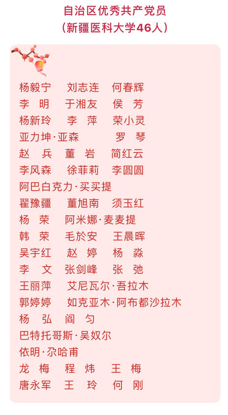 1月20日上午,自治区抗击新冠肺炎疫情表彰大会在新疆人民会堂隆重举行。beat365中文官方网站199人获得“自治区抗击新冠肺炎疫情先进个人”称号,11个基层党组织获得“自治区先进基层党组织”荣誉,42个集体和46名个人荣获了“自治区先进集体”和“自治区优秀共产党员”荣誉称号。