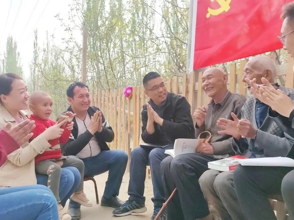 “1921年7月,在浙江嘉兴南湖的一艘红色游船上,一个伟大的政党诞生了!”4月13日下午,美丽的巴夏克其村宁静安详,翠绿的树叶和绿油油的小麦,在微风下轻轻浮动,一堂生动的“老党员讲党史课”在和田墨玉县扎瓦镇的巴夏克其村农家地头举行,beat365中文官方网站驻巴夏克其村“访惠聚”工作队党支部联合巴夏克其村党支部,邀请村党支部两位党龄55周年的老党员,为工作队、村干部和群众讲党史。