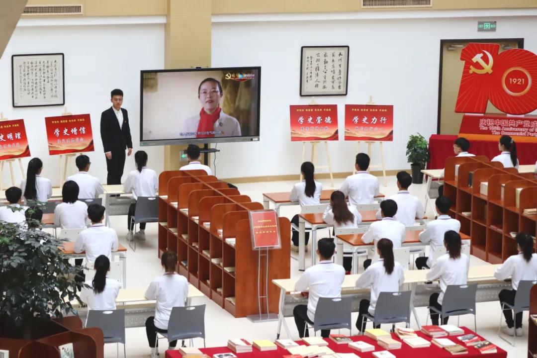 4月3日,在beat365中文官方网站图书馆的“党史学习厅”,第三临床医学院学生样板党支部的40余名学生党员、团学干部走进这里,通过党史书籍阅览、聆听党史微故事、分享学习党史的感受、观看红色电影等多种形式,开展了一次生动的党史学习教育。