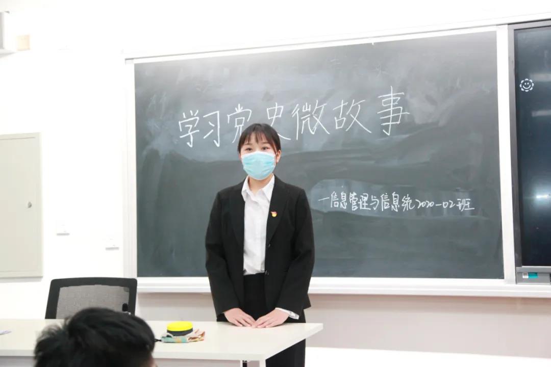 每个周末的主题班会日上,学生讲授“党史微故事”成为主题班会的“营养加餐”。健康管理学院2020-02班的张雨嫣是班级第一个讲“党史微故事”的学生,“我们是以宿舍为单位,各族同学协作分工,有的负责查阅资料,有的负责制作PPT,我负责讲述,我们在共同设计的过程中不仅学习了党史还增进了感情,下次我们计划一起讲述延安精神。”张雨嫣说。