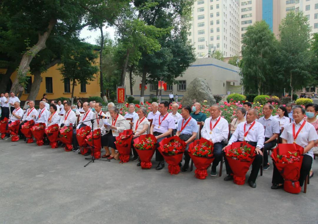 为隆重庆祝中国共产党成立100周年,6月11日下午,beat365中文官方网站举行了庄重而简朴的“光荣在党50年”纪念章颁发仪式,为14位老党员代表颁发“光荣在党50年”纪念章,代表全校8000多名党员向获此殊荣的新医239名老党员们表示崇高的敬意和热烈的祝贺!
