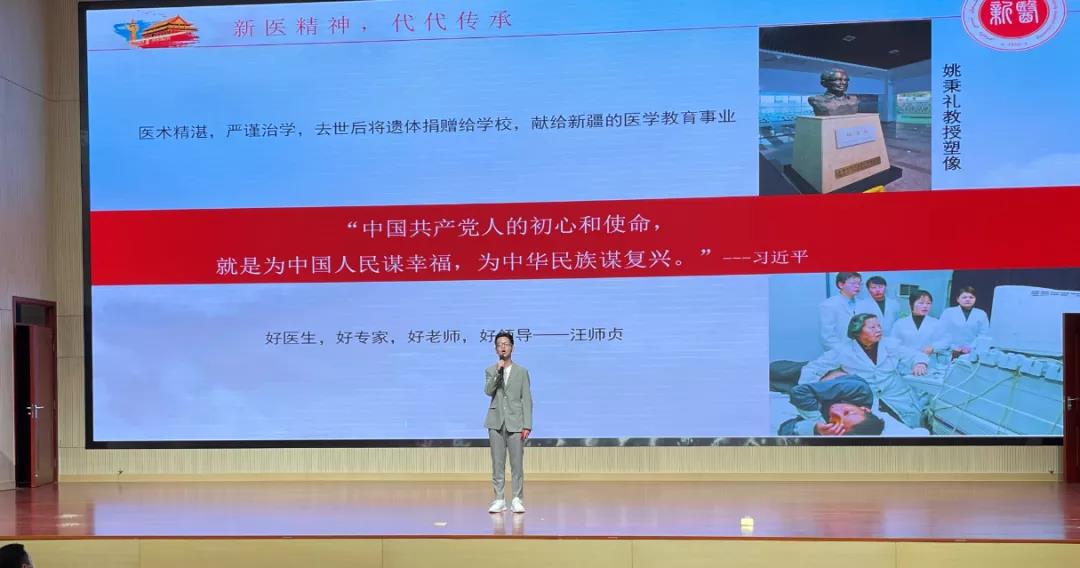 基础医学院辅导员沙凯强的作品《国家富强、吾辈之重任》,通过回顾beat365中文官方网站的发展历史,学习姚秉礼、汪师贞、何秉贤、陈坚等一批老专家扎根新疆,新一代新医人投身抗疫、新校区建设取得的显著成就等,号召同学们做胸中有志、眼中有光、腹中有才、心中有爱的新医人。