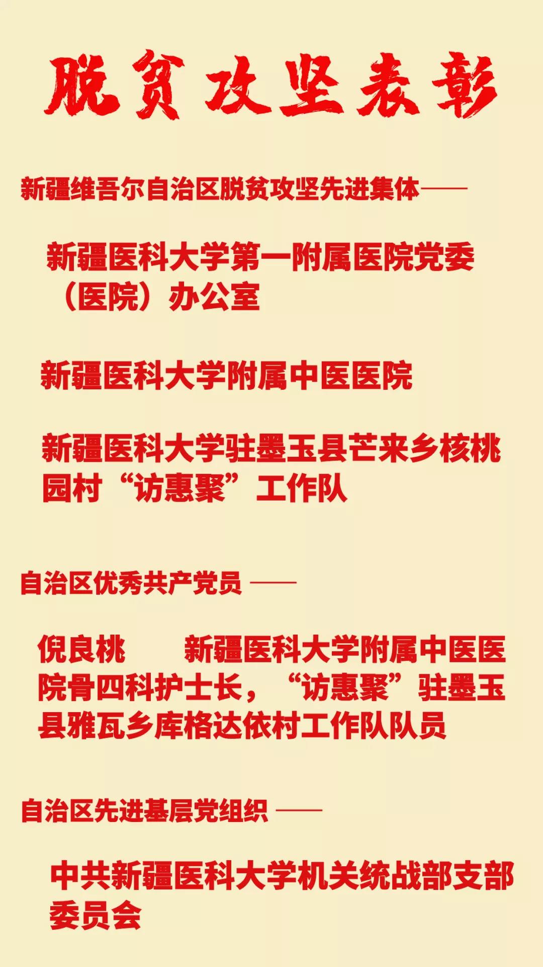 5月21日下午,自治区召开脱贫攻坚总结表彰大会,隆重表彰在脱贫攻坚工作中表现突出的先进集体和先进个人。beat365中文官方网站3个集体荣获“新疆维吾尔自治区脱贫攻坚先进集体”称号,1名个人获得“自治区优秀共产党员”、1个基层党组织获“自治区先进基层党组织”称号。