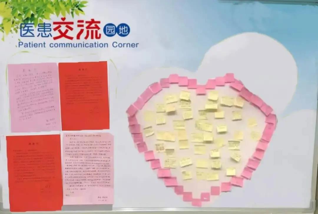 在李晓梅主任的影响下,“医患交流园地”的小白板应运而生。每当遇到患者和家属想送锦旗的时候,科室医护人员都会主动“劝说”病人“打消”这个念头。护士还为患者提供了彩纸或便利贴,让大家在“医患交流园地”上写下感言,可以表达自己的心意,还可以向科室提供宝贵意见。