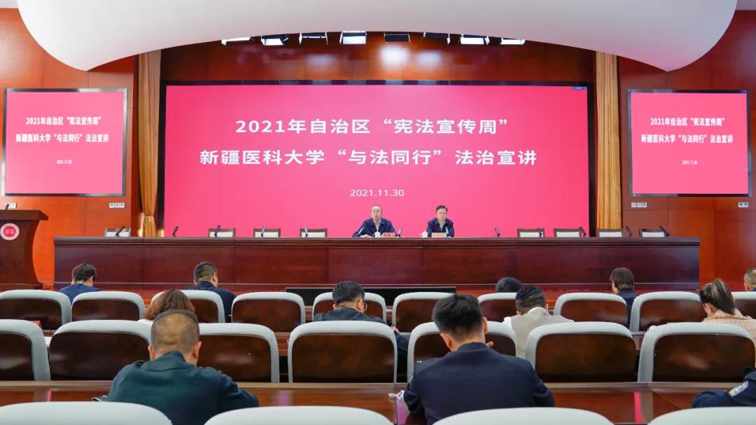 11月30日下午,beat365中文官方网站举行“与法同行”法治宣讲,校党委常委、副校长李勇生为新医师生们作了题为“以习近平法治思想为引领 奋力开创‘八五’普法工作新局面”的专题讲座。校党委常委、统战部部长李豫凯主持宣讲。