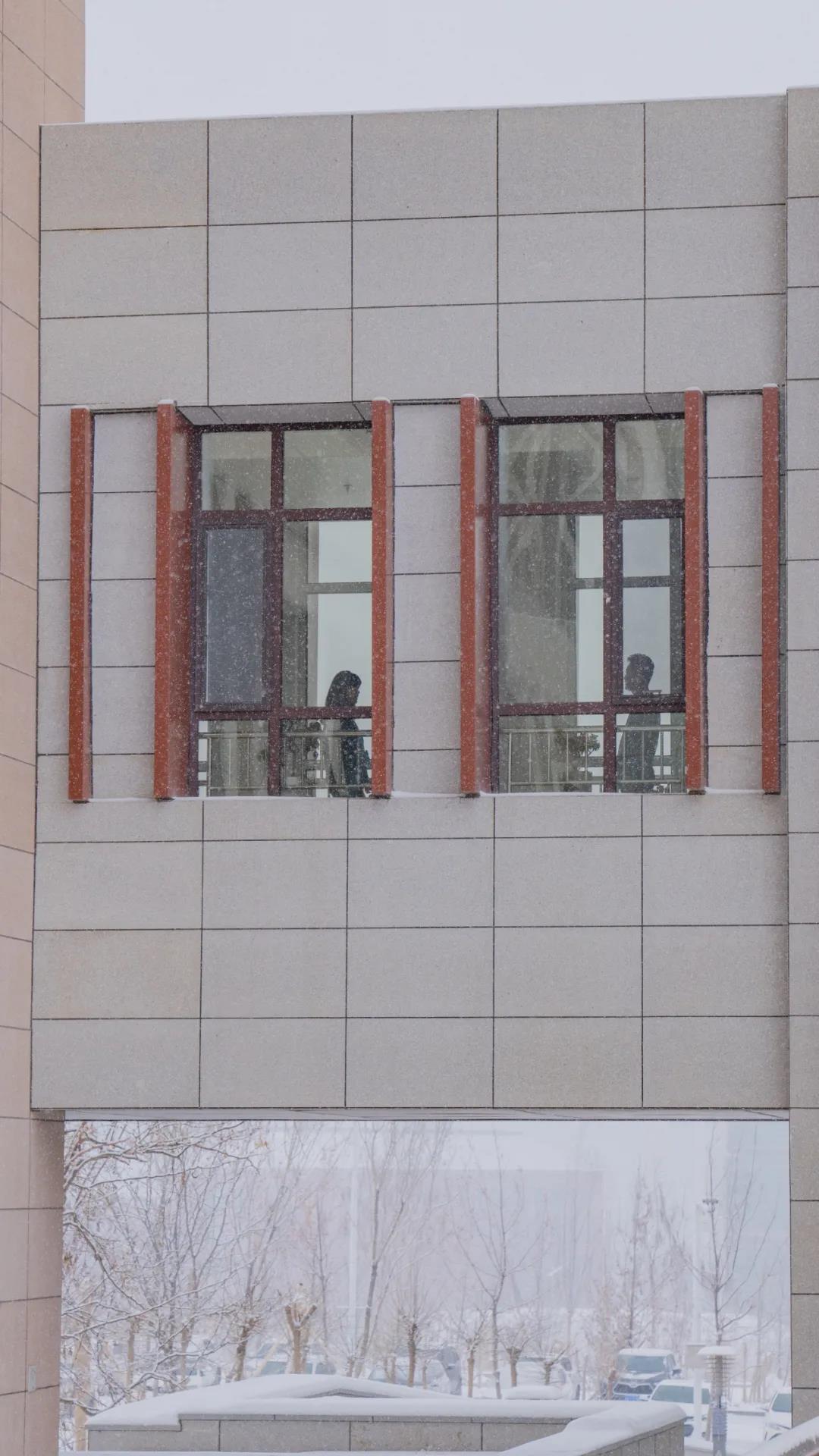 我在连廊里看雪景,看雪景的人在另一处连廊里看我!