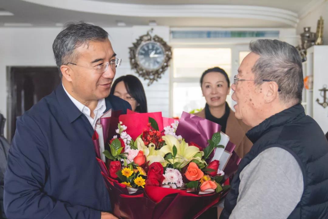 校党委副书记、校长凯赛尔•阿不都克热木分别走访了原新疆医学院副院长帕尔哈提·阿不都热依木教授,原药学院专家陈坚教授和离退休老干部阿米娜·苏莱曼,为他们送去鲜花和节日的祝福。