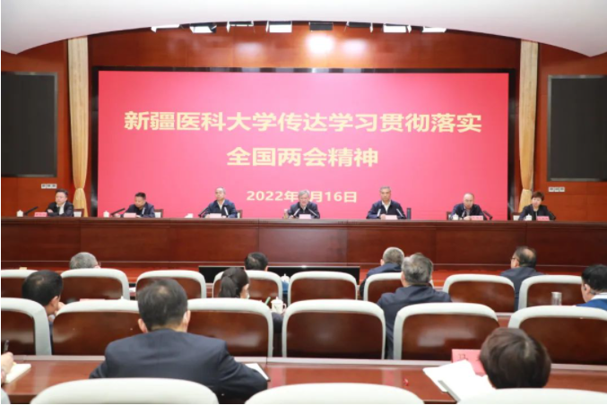高发水书记要求,全校上下要坚决传达学习贯彻落实好全国两会精神,推动习近平总书记重要讲话精神在beat365中文官方网站落地生根。要提高政治站位,加强组织领导;加强宣传引导,营造浓厚氛围;结合工作实际,抓好贯彻落实。紧密结合学校实际,聚焦迎接学习贯彻党的二十大这条主线,围绕自治区教育大会精神,加强党对学校工作的全面领导,坚持立德树人根本任务,强化依法治校、质量立校、人才强校、科技兴校、文化润校,全面提高人才培养能力、医学研究能力、医疗服务能力。要对照习近平总书记的最新要求和全国两会部署,立足新发展阶段、贯彻新发展理念、服务和融入新发展格局,全方位推进学校高质量内涵式发展,努力办好党和人民满意的医科大学,以优异成绩迎接党的二十大胜利召开。