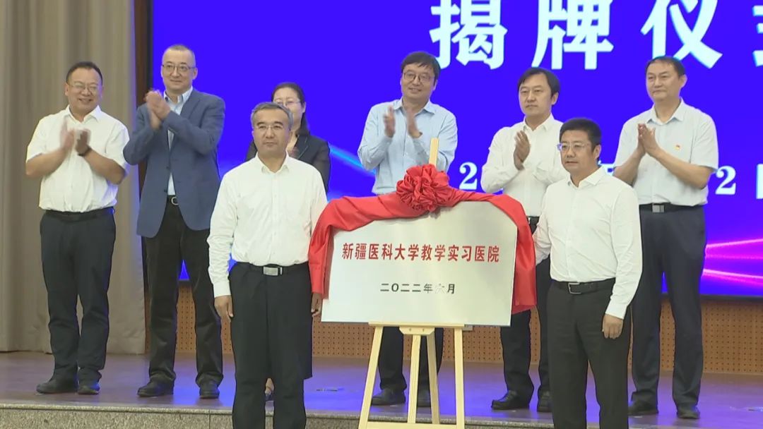 beat365中文官方网站党委副书记、校长凯赛尔·阿不都克热木与玛纳斯县县委书记刘强共同为beat365中文官方网站教学实习医院揭牌