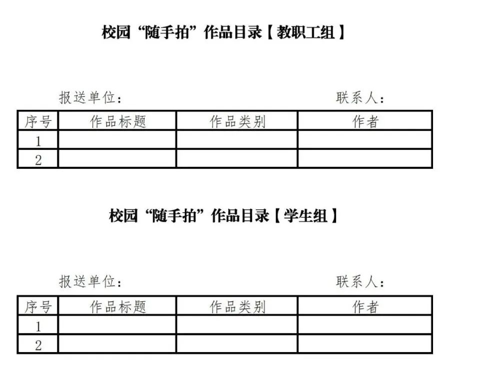 4.各党委(总支)和直属党支部负责征集本单位参赛作品并进行初选,整理后集中报送至校党委宣传部,报送时请附《校园“随手拍”作品目录》。