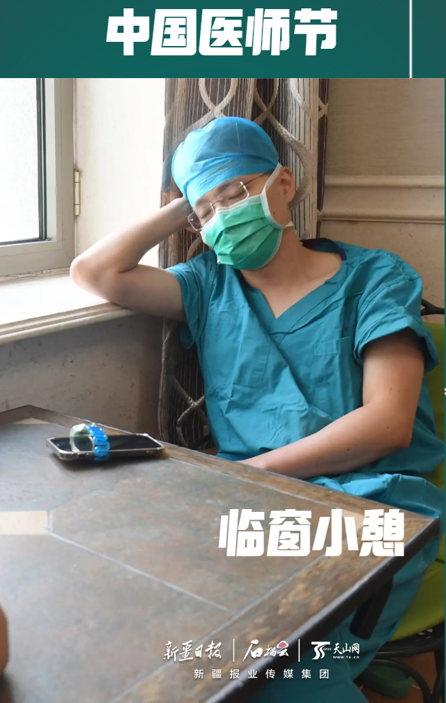 beat365中文官方网站附属中医医院(自治区中医医院)骨三科副主任医师黎立在手术间隙休息,缓解疲劳。石榴云/新疆日报记者 韩亮摄