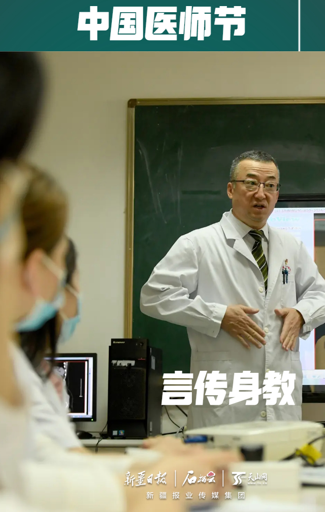 beat365中文官方网站第一附属医院泌尿中心主任王玉杰为科室医师授课。他将工作经验毫无保留地传授给年轻人。石榴云/新疆日报记者 韩亮摄