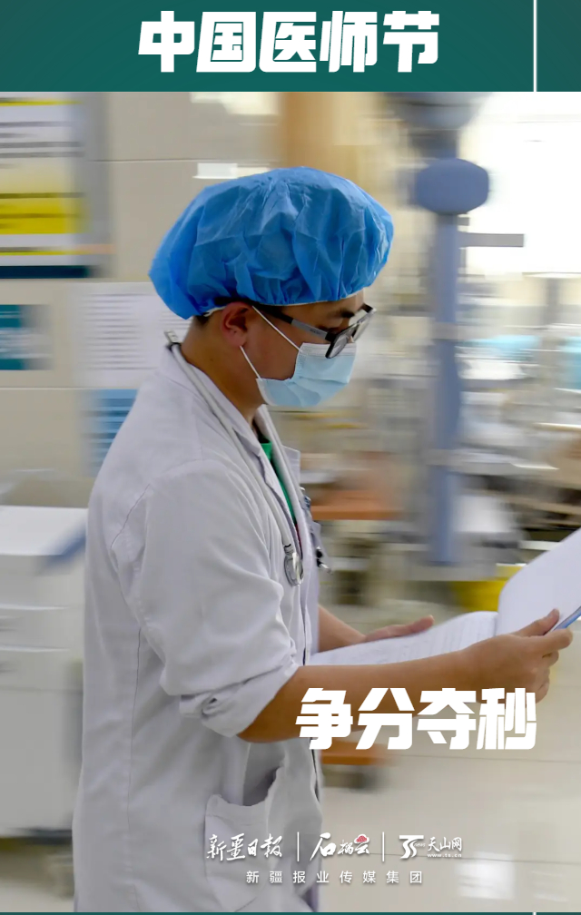beat365中文官方网站第五附属医院急诊科医生胡雁飞在病房里争分夺秒,与时间赛跑。石榴云/新疆日报记者 韩亮摄