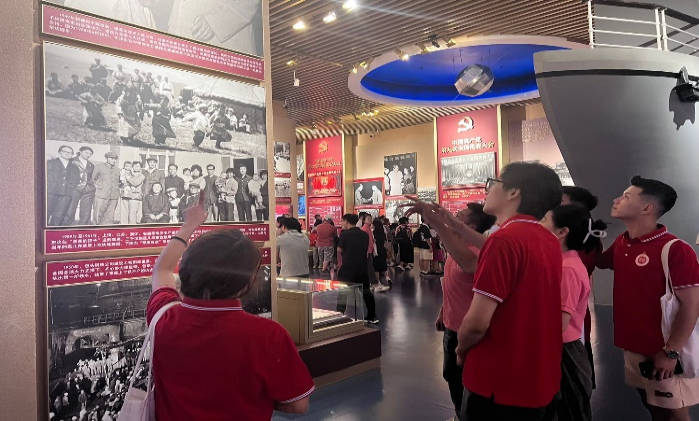 研学团走进北大红楼,重温觉醒年代。北大红楼同建党历史紧密相关,是我国最早研究和传播马克思主义之地。同学们通过手中的镜头,捕捉着青年学子对红色文化的印象和感悟。《新青年》北京编辑部旧址,蔡元培办公室复原场地,《启蒙者》油画,《八大同人编辑》浮雕...同学们一边认真听讲解,一边用手机拍摄记录。王锋同学感慨地说,“我喜欢主持和宣讲,回到学校后,希望通过自己的声音,向大家去讲述这些真实的历史故事,传播先辈的革命精神。”