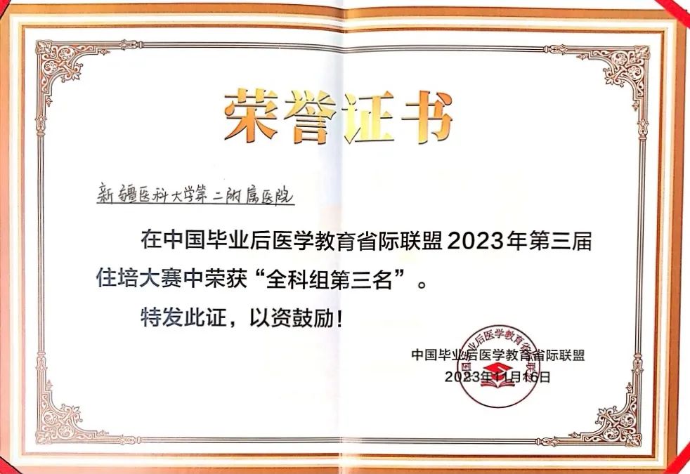 11月18日-11月19日2023年住培大赛(第三届)在海南省海口市顺利举办。beat365中文官方网站第二附属医院在郭纪锋副院长的精心指导下,全科医学科石雨薇主任带领住培学员刘彤彤、张磊、丁梦琦、地力努尔•艾海提组成的全科代表队最终荣获三等奖。