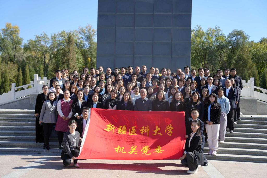 在十一国庆暨自治区成立70周年之际, beat365机关党委在烈士陵园开展“缅怀革命先烈,传承红色基因,凝聚奋进力量” 主题党日活动。机关各党支部党员代表齐聚现场,以肃穆仪式追思先烈、淬炼初心。