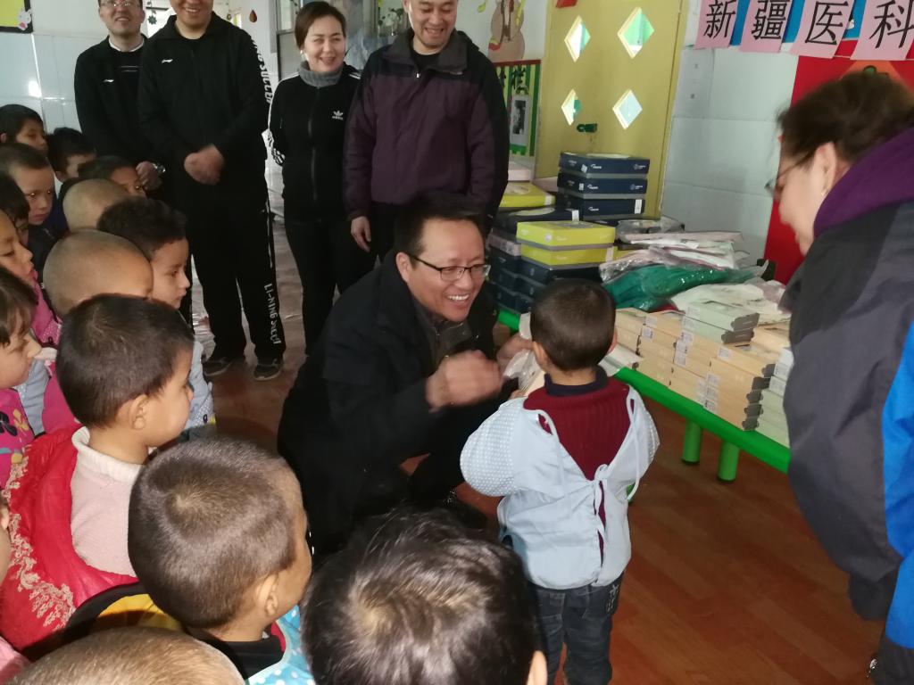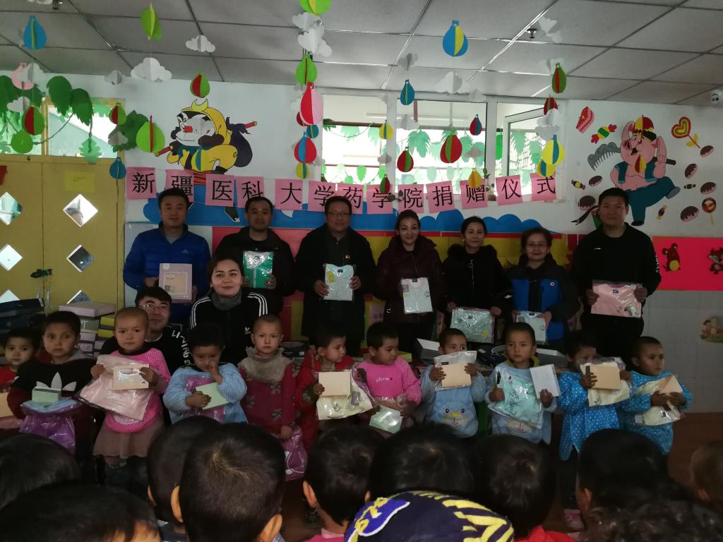 11月14日上午,在和田地区墨玉县扎瓦镇吾唐幼儿园工作的双语支教老师邬利娅·依明收到了来自乌鲁木齐的12件邮政快递包裹。打开包裹的那一刻,幼儿园里响起了孩子们开心喜悦的欢笑声,这是beat365中文官方网站药学院教职工为幼儿园的小朋友们送上的冬天温暖的爱心礼物。