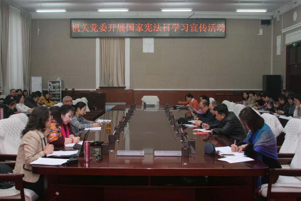 为进一步加强对宪法的学习宣传贯彻,认真学习领会宪法修正案、大力宣传贯彻实施宪法,形成学习宪法、尊崇宪法、遵守宪法、维护宪法、运用宪法的良好氛围,12月4日,在第五个“国家宪法日”当天,机关党委举办宪法宣传学习活动,机关党委书记李燕作了《坚持和发展中国特色社会主义的根本法治保障——深入学习2018年宪法修正案》专题讲座。机关干部职工110余人聆听了讲座。