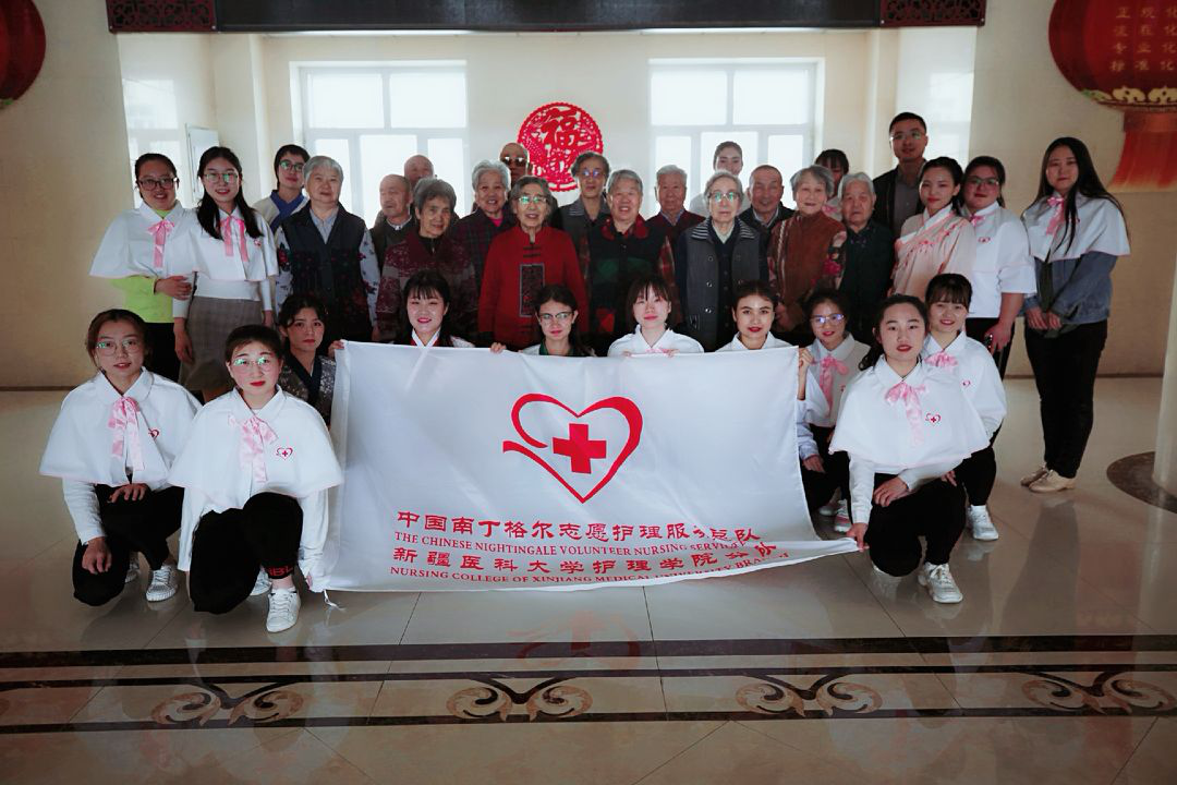 护理学院南丁格尔志愿者护理服务分队携手新医路社区访惠聚工作队在4月7日前往乌鲁木齐市养老福利院开展“5•12护理志愿行,传承中华情”志愿服务活动。志愿者们用实际行动践行“博爱大众、潜心学术、引领精神”的志愿者精神。