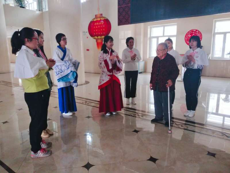 接下来学生志愿者们为老人们带来了“传承中华情”才艺表演。志愿者们用昂扬的歌声、动人的舞姿为老人们带来欢乐,现场许多爷爷奶奶在听到同学们唱出经典红歌《强军战歌》时纷纷挥舞手臂、打着节拍一起跟唱起来。一位奶奶在现场为我们即兴演唱了一首《中国梦》,她自信昂扬的神态激发了我们热爱祖国的壮志情怀,也不由得敬佩前辈们为祖国繁荣昌盛所做出的贡献。通过此次活动同学们更加深刻地体会到“南丁格尔精神”,纷纷表示要以南丁格尔为榜样,尽己所能,帮助他人,服务社会,践行人道、博爱、奉献的志愿服务精神,为成为一名合格的护理人才不懈奋斗。
