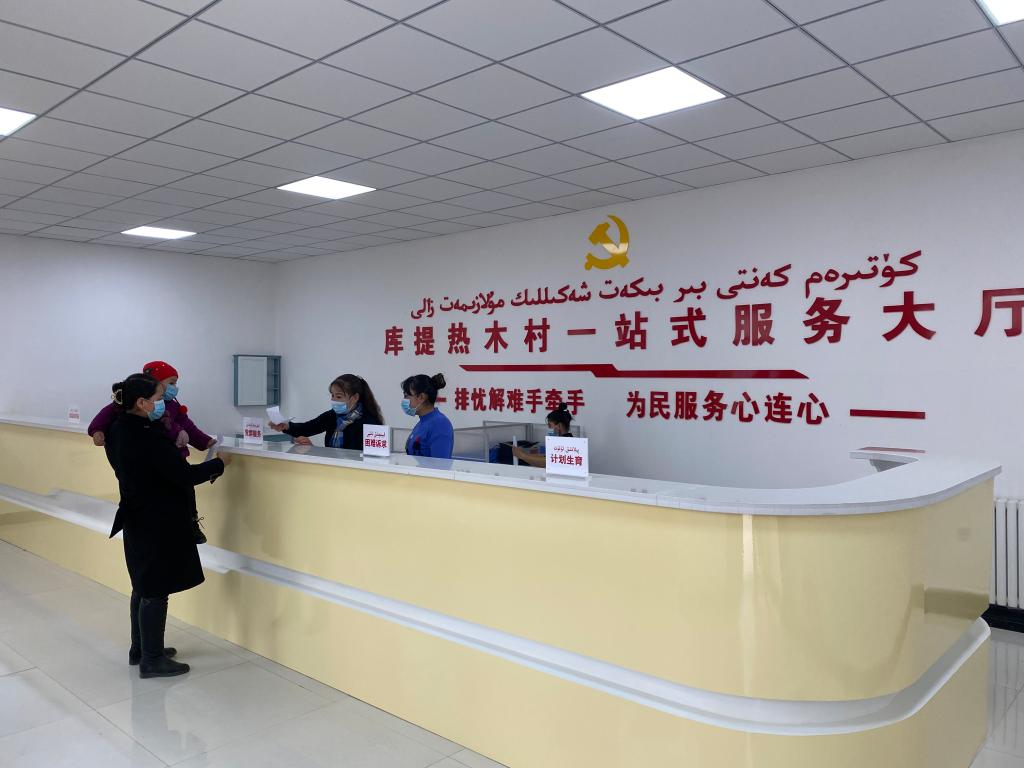 在搬迁到一站式服务大厅当天,就有村民来办理业务。支部书记艾日夏提•库尔班和工作人员微笑着接过村民递交的材料,认真看了看说,“您的材料可以了,看一看新建的一站式服务大厅怎么样。”旁边的村民马上竖起大拇指点赞,开心地笑了。据了解,贫困群众在日常生活中遇到的所有问题,均可“一站式”办结,大大缩短了办事流程,提高了办事效率。近年来,库提热木村村委会在beat365中文官方网站前方党工委的指导下,全村干部群众共同努力,发生了翻天覆地的变化。党组织阵地建设进一步加强,村委会安装了电锅炉采暖,国语教室安装了LED大屏幕,党员学习会议室进行升级改造。