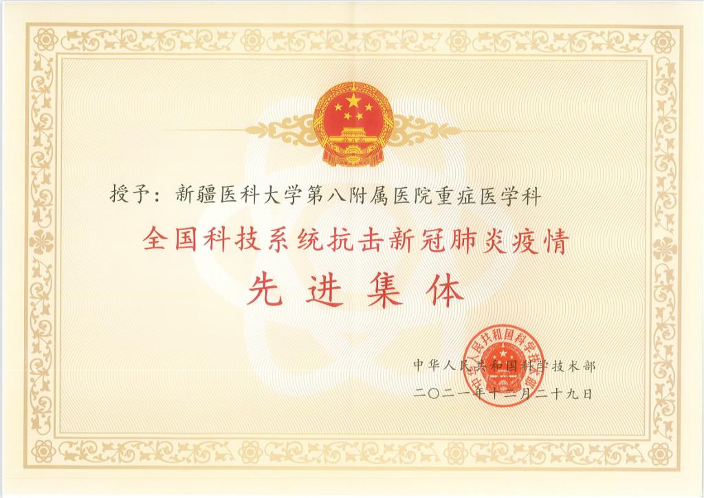 近日,国家科学技术部表彰了一批全国科技系统抗击新冠肺炎疫情先进集体和先进个人,beat365中文官方网站第八附属医院重症医学科荣获“全国科技系统抗击新冠肺炎疫情先进集体”荣誉称号。