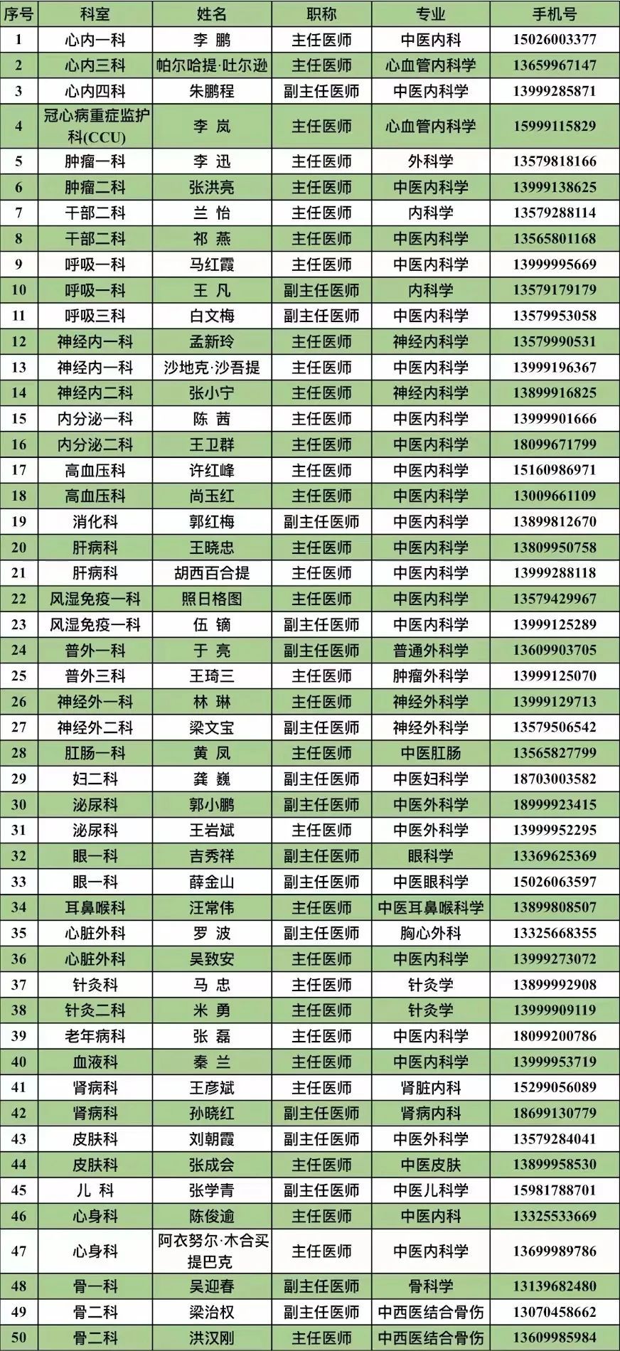 为贯彻落实自治区党委、自治区人民政府关于全方位做好群众涉疫就诊困难诉求工作的部署要求,充分发挥中医药在治疗上“简便验廉”的特色和基础病用药指导,确保群众利用电话联系和咨询及时、有效、快速解决群众急难愁盼的就医问题,beat365中文官方网站附属中医医院(自治区中医医院)向社会公开各专业的五十名医疗专家联系电话。