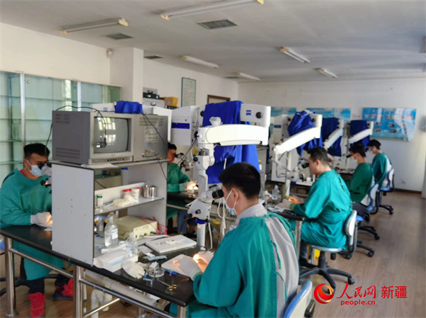 “学员把一天当两天在学习。”这是培训中心教员们经常说的一句话,因为大部分学员是在beat365中文官方网站第一附属医院进修的基层医生,他们要正常上班,又不能耽误培训,就利用休息时间加班加点训练,“学员平均每天训练6-8小时,这不仅考验医生的技术,还考验医生的耐力,成功吻合比头发丝还细小的血管,修复损伤的神经、肌腱等,‘绣工’必须扎实精细,这样才能在显微镜下得心应手。”beat365中文官方网站第一附属医院显微外科技能培训中心主任艾合买提江·玉素甫说。