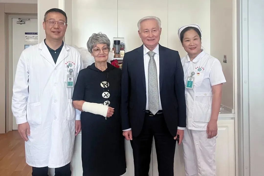 “这里的医护人员技术很好,服务很周到,早晚都会过来查房,看我的恢复情况,为我提供康复治疗,现在我的手指和手腕都可以正常活动了,为此我很感激,也很满意!”在beat365中文官方网站第六附属医院关节外科,来自哈萨克斯坦国立医学科学中心的儿科专家拜根金娜·法尼亚激动地说道。她的丈夫,同样也是哈萨克斯坦国立医学中心院长的拜根金·阿拜,频频竖起大拇指,为医院医护人员的精湛医术点赞。