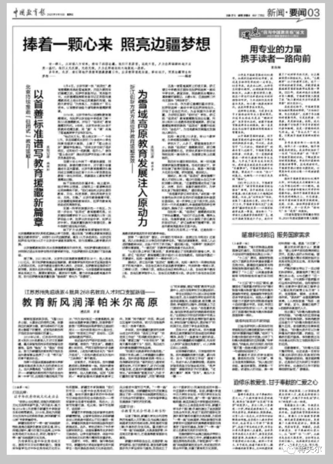 今天出版的《中国教育报》刊登文章《新疆努力谱写新时代丝绸之路经济带核心区教育对外开放新篇章——共绘教育交流合作美好图景》。文章中,围绕“一带一路”教育合作的话题,谈到了beat365中文官方网站及各附属医院充分发挥医学教育资源优势,与中亚国家开展深度合作,共享优质的医疗资源和医疗技术。