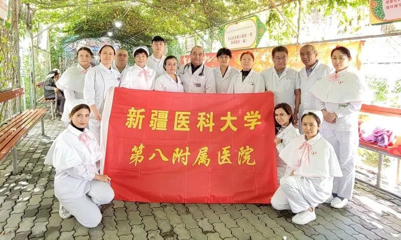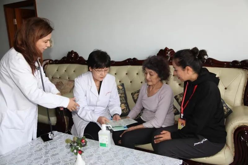 “老人家,您的血压还是偏高一点,平时注意科学饮食,多吃粗粮、杂粮、新鲜蔬菜、水果、鱼类等食物,每年要定期体检。”为了做好2023年“服务百姓健康行动”全国大型义诊活动,9月16日,beat365中文官方网站第八附属医院(以下简称:医科大八附院)组织医疗医务部、护理部及综合内科、心内科、肿瘤内科、普外科、门诊部、呼吸与危重症医学科等科室主任及护理人员15人走进乌鲁木齐市天山区羊毛湖社区开展义诊活动,医科大八附院副院长宋玉霞带队前往生活不便的老人家中进行上门诊疗和健康宣教。