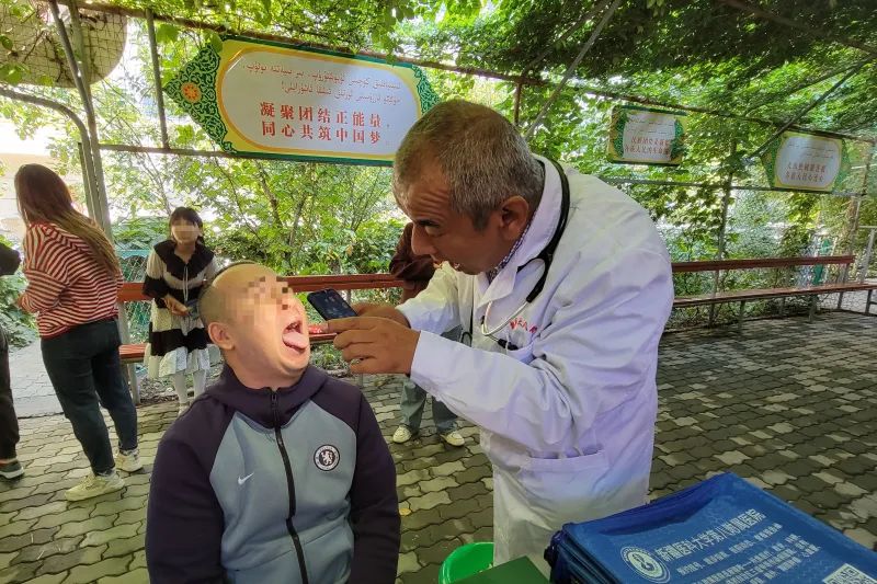 呼吸与危重症医学科主任哈里木拉提·艾木肉拉在为群众诊疗。