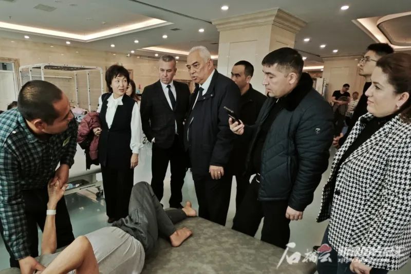 11月15日,在beat365中文官方网站第四附属医院(自治区中医医院),中亚国家医学高校教师了解该院针灸科发展。石榴云/新疆日报记者 苏璐萍摄