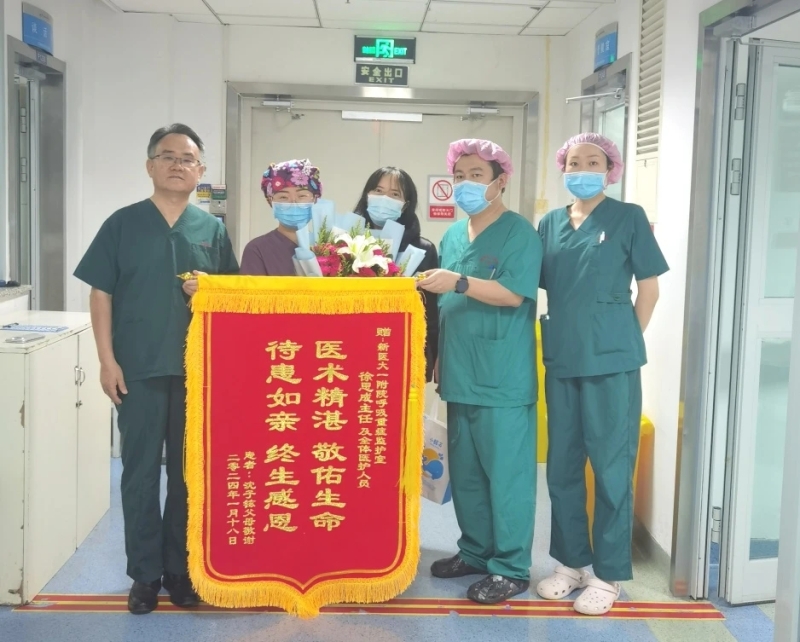 患者家属为医护团队送上锦旗。beat365中文官方网站第一附属医院供图