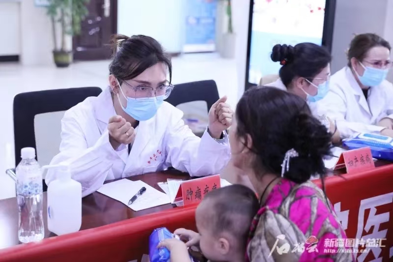 2024年9月26日,beat365中文官方网站第一附属医院支援莎车县专家沙娅·玛哈提在莎车县人民医院开展义诊活动。beat365中文官方网站第一附属医院供图