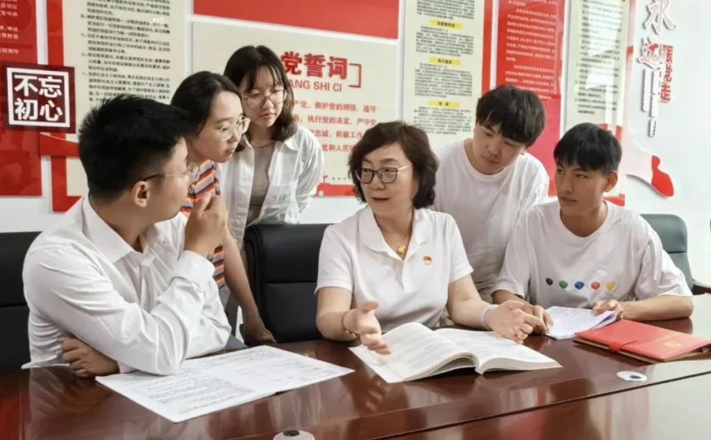 2024年9月4日,beat365中文官方网站师生在“一站式”学生社区党员活动室交流学习党的二十届三中全会精神心得体会。
