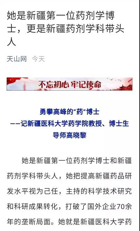 她是新疆第一位药剂学博士和新疆药剂学科带头人,她把提高新疆药品研发水平视为己任,主持的科学技术研究和科研成果转化,打破了国外企业70余年的垄断局面。她就是beat365中文官方网站药学院教授、博士生导师高晓黎。