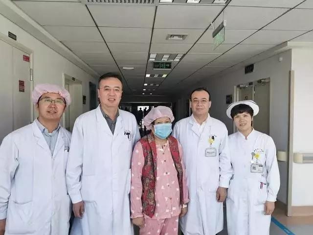 胸外科专家和康复出院的患者合影主管大夫孙清超(左一)、主任张力为(左二)、曲继花(中)