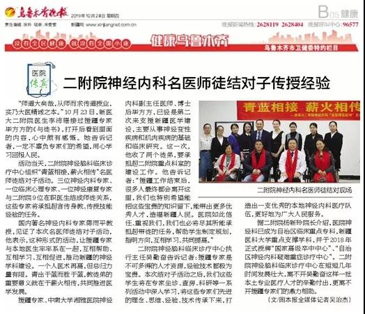 10月24日出版的《乌鲁木齐晚报》报道了beat365中文官方网站第二附属医院的消息: