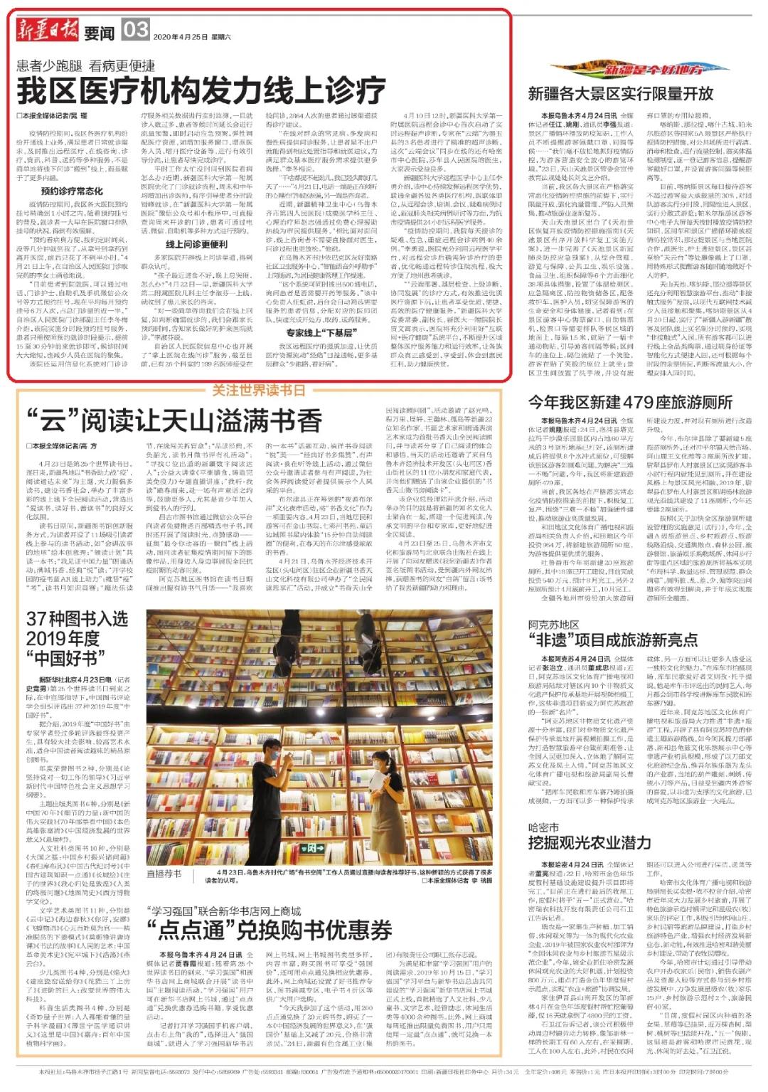 出版日期:2020-04-25 A03版●要闻 新疆日报