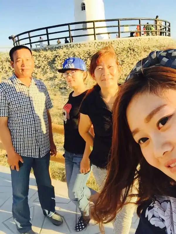 谢嘉芮(右一)和家人旅游纪念