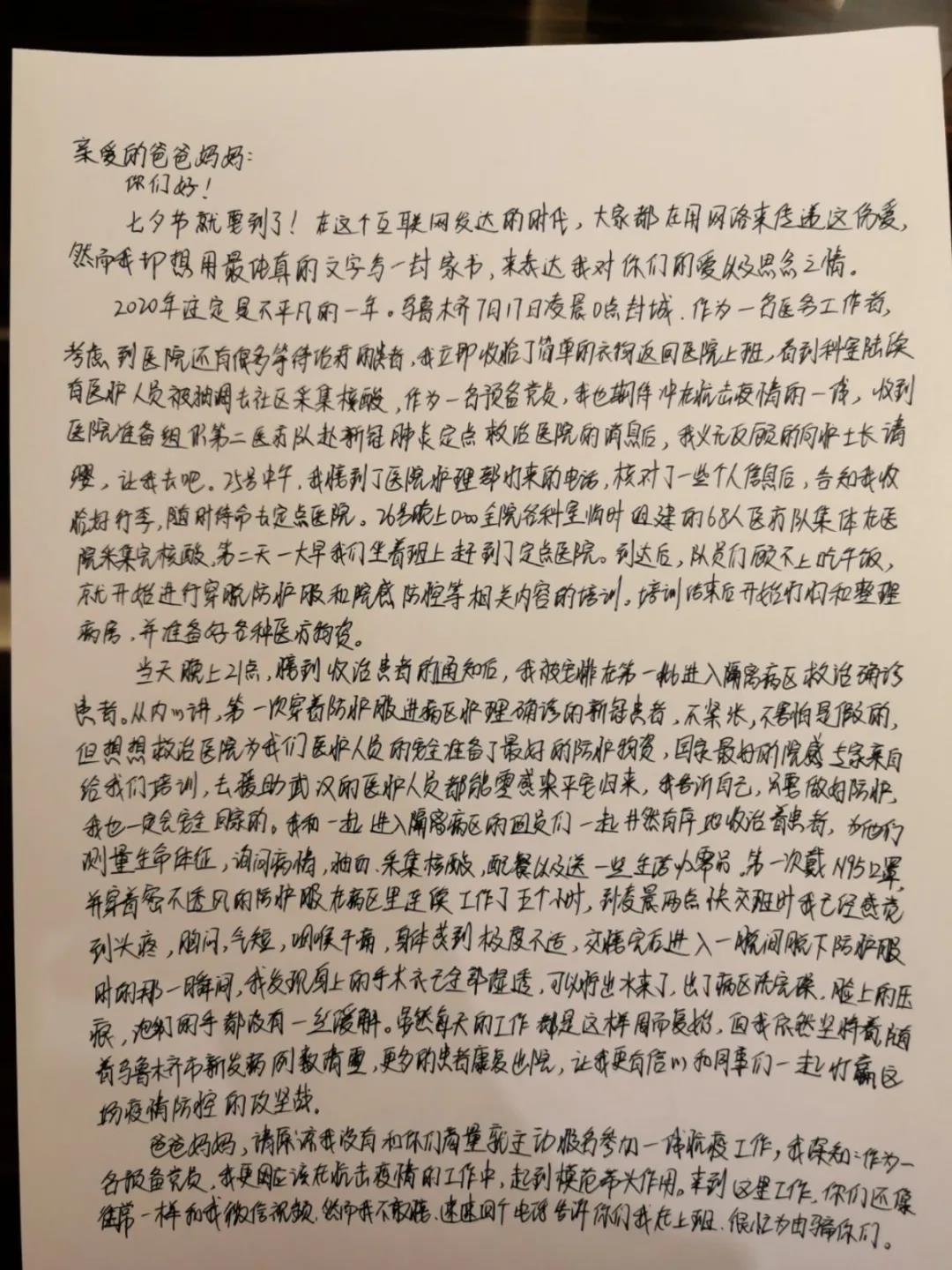 每逢七夕,总能见花好月圆的热闹景象。但今年的七夕,很多人在岗位上度过。8月24日,3名beat365中文官方网站附属肿瘤医院的医生仍然坚守在自治区新冠肺炎医疗救治定点医院。在这个特别的日子,他们在抗疫一线,用书信向所爱的人送出特别的祝福。