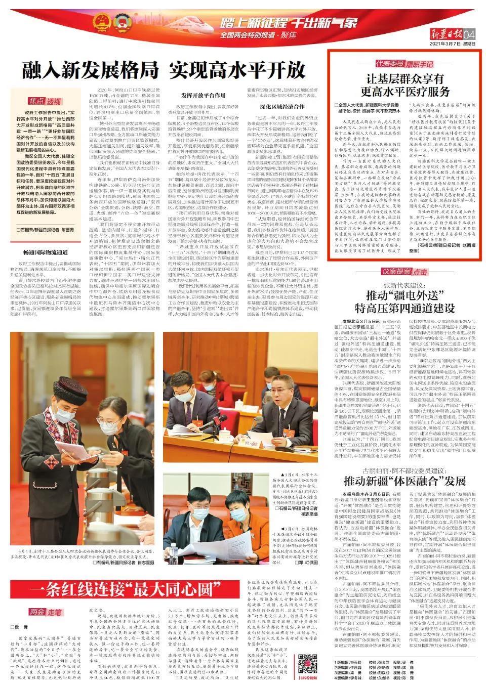 beat365中文官方网站是全疆唯一独立建制的医学院校,医学教育与医疗卫生资源优势得天独厚,在健康扶贫、医疗扶贫中发挥了积极作用。2020年,新冠肺炎疫情防控阻击战中,作为一名人大代表,我和医护人员一道连续奋战在新冠肺炎患者救治、康复治疗、核酸采集、院感防控等第一线,圆满完成了党和人民的重托。