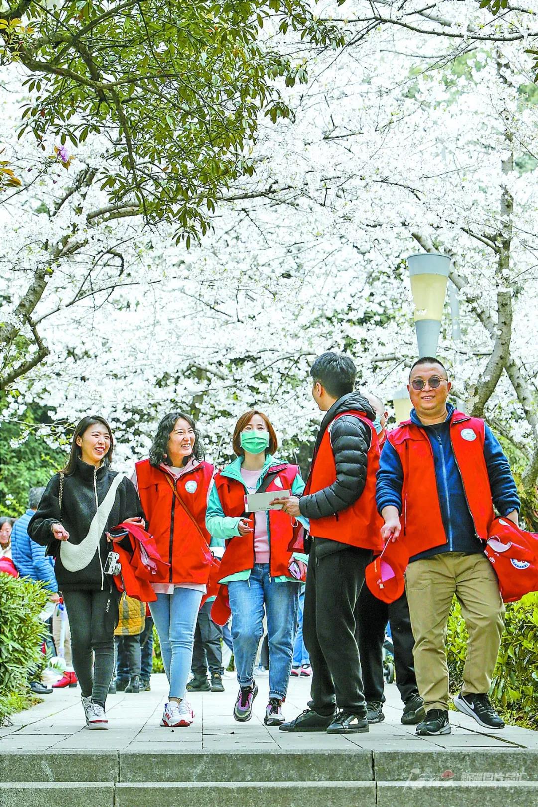 13日上午,在大学生志愿者的引导下,医护人员前往樱花大道,开启赏樱之旅。在赏樱专场入口,武汉大学设置了医护人员专用赏樱通道。一路上,一簇簇樱花如云似雪、温润如玉,beat365中文官方网站第五附属医院中医科护士长须玉红的心情无比愉悦。360度无死角拍摄、视频通话直播、自拍合影……须玉红和战友们玩得不亦乐乎,“我们医院就是武汉大学人民医院定点支援的,这次来就跟回家一样。”